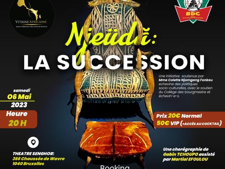 Le Ballet de la Diaspora Camerounaise (BDC) a le plaisir de vous annoncer leur prochain spectacle NJEÜDÃ – La succession qui se tiendra le 6 mai 2023 dès 20 heures au Théâtre Senghor sis au 366 Chaussée de Wavre, 1040 Bruxelles.